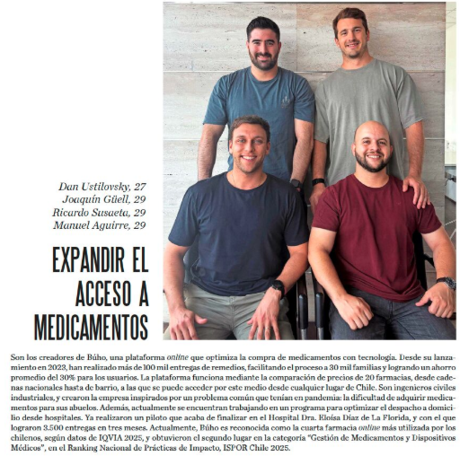 En noviembre de 2025, sus cuatro fundadores fueron reconocidos entre los 100 Jóvenes Líderes, iniciativa de la Universidad Adolfo Ibáñez junto a la revista Sábado de El Mercurio.